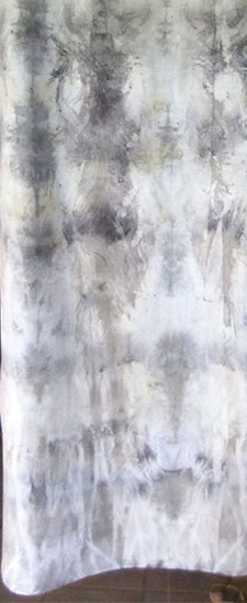 The glow effect had disappeared after two hours, about the same time that the samples had been exposed to UV light. When exposed to daylight for about a whole day, the glow effect did not continue for so much longer. I look forward to living with a piece in with I incorporate photo-luminescent fabric. The painted fabrics will develop a different life at night.